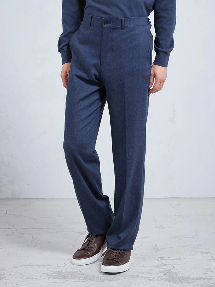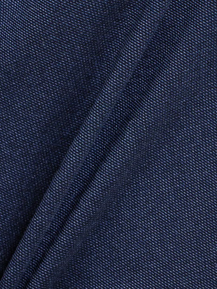 パンツの腰回りに生地の折り込みがなく、スッキリとしたシルエットを実現します。シンプルで洗練された印象を与え、すっきりとした着こなしが可能です。