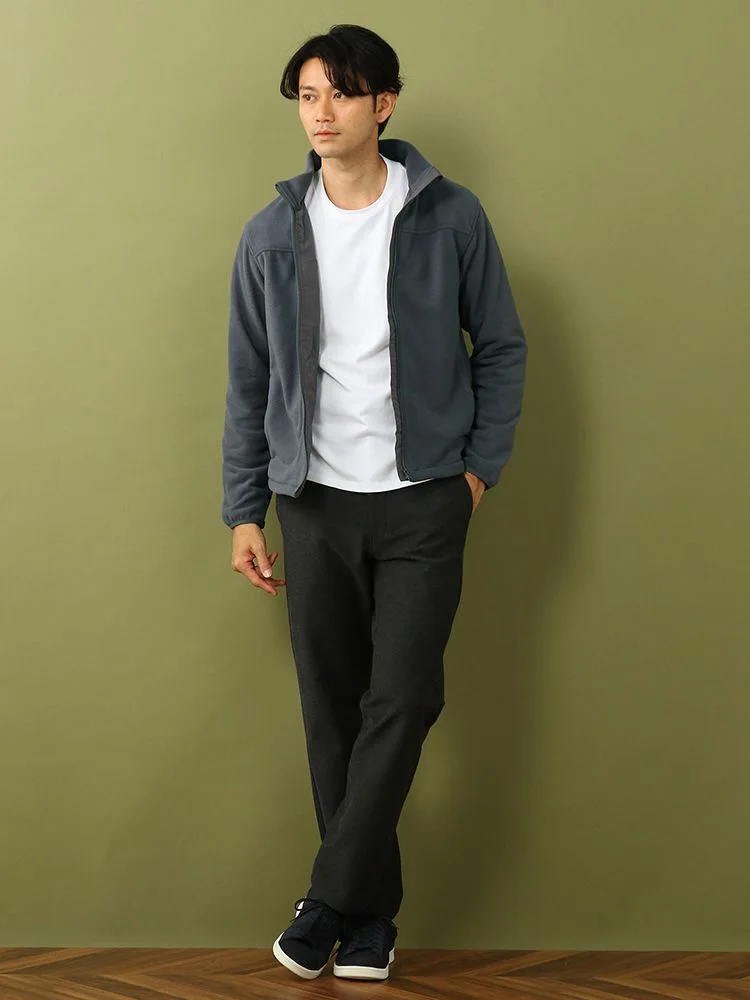 落ち着いた色味が大人のカジュアルスタイルにぴったり、さっと脱ぎ着やしやすいジップアップデザインです。