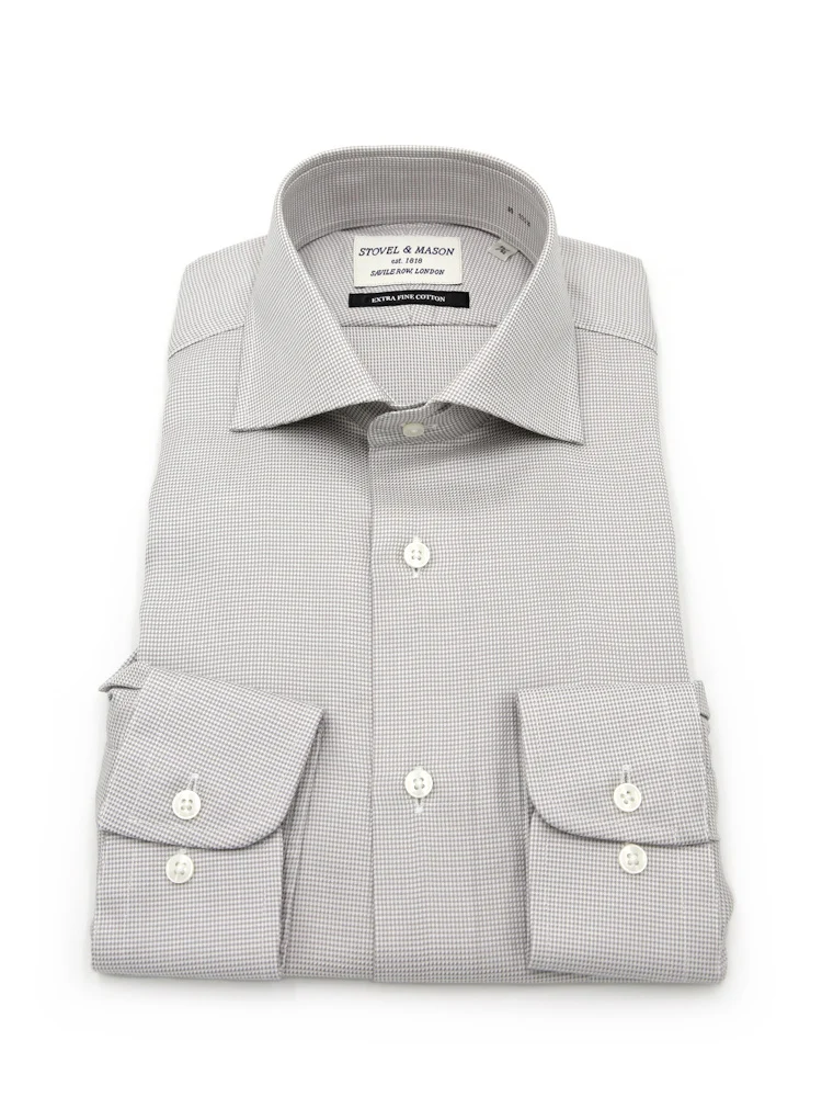 【形態安定】長袖 ワイシャツ セミワイド ヘリンボン nero 通年【スリムデザイン】