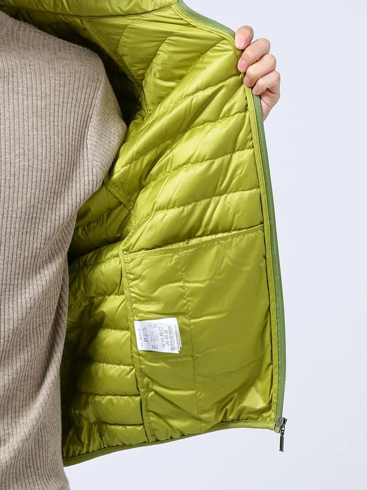 さっと羽織れる、軽くて暖かなダウンジャケット。