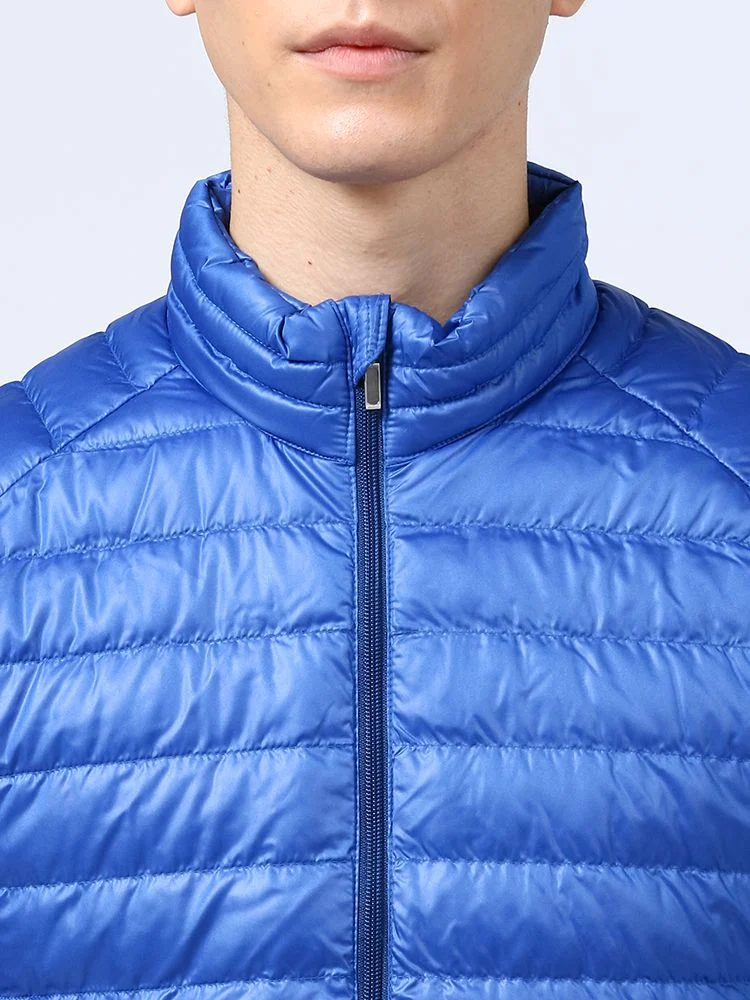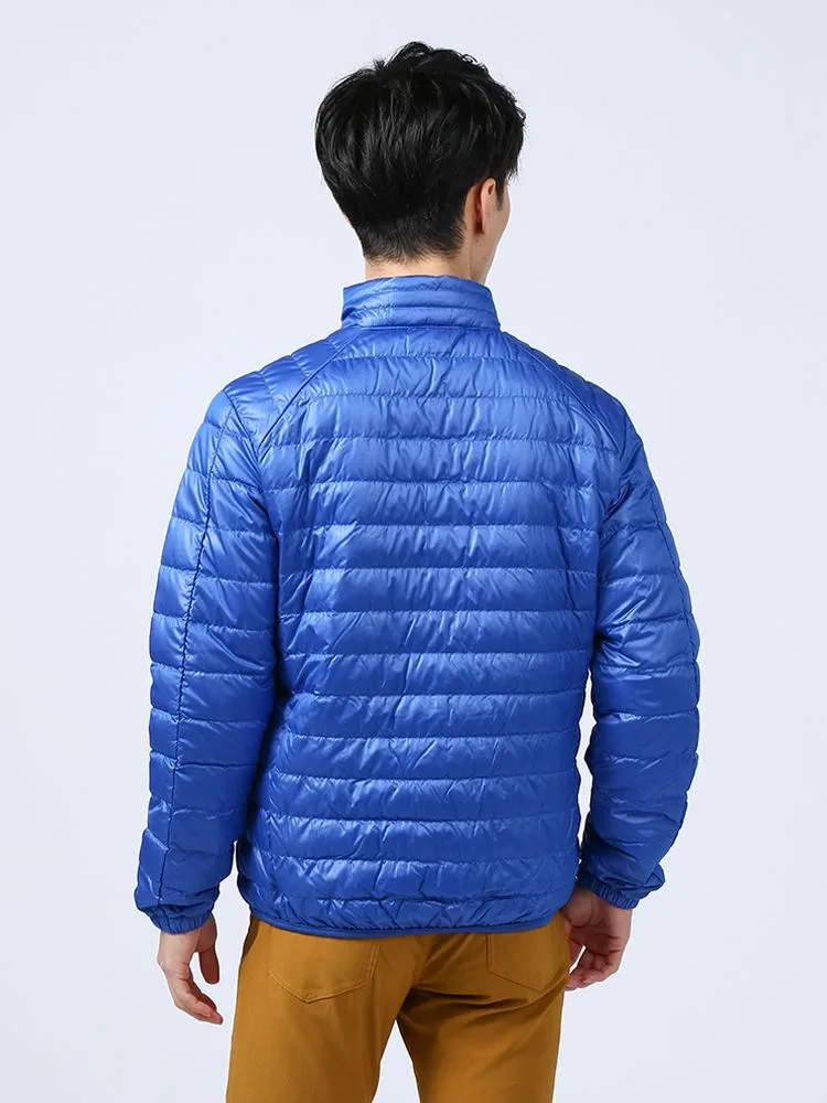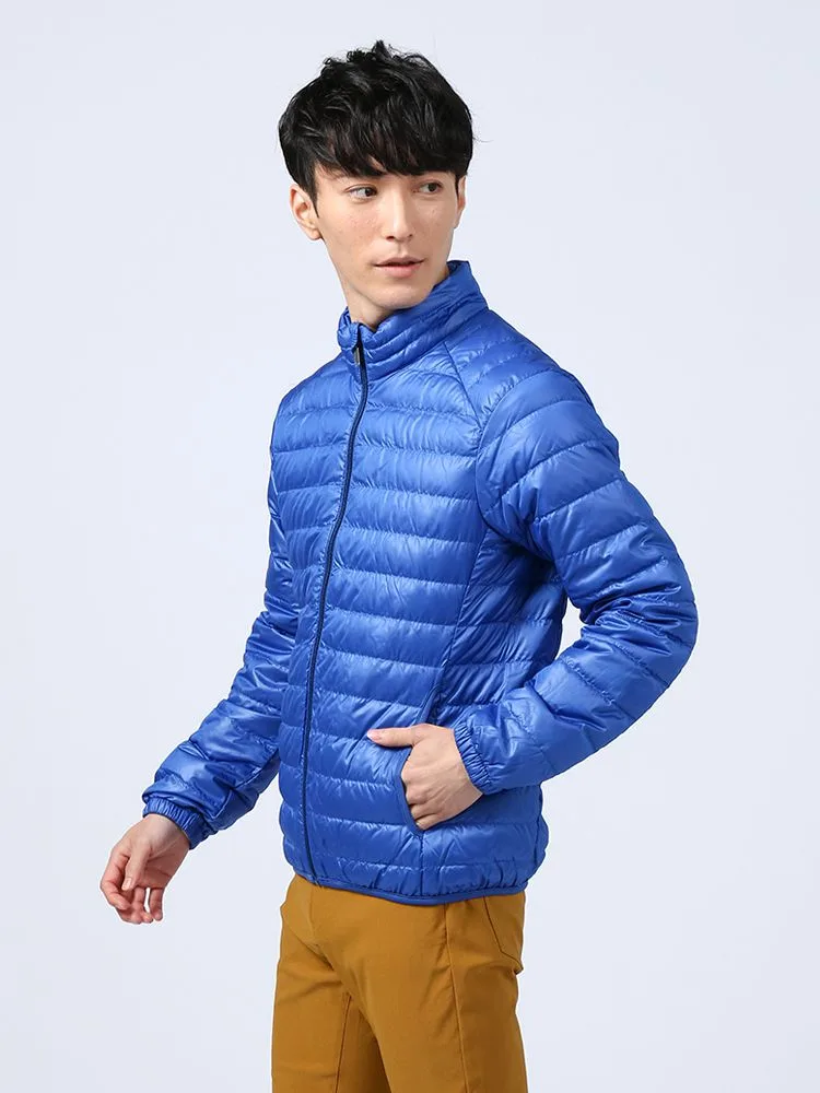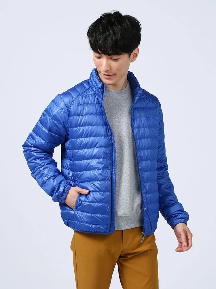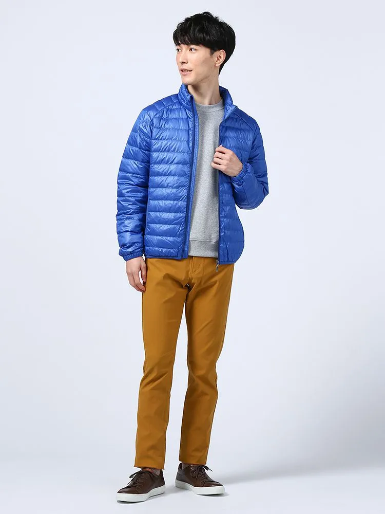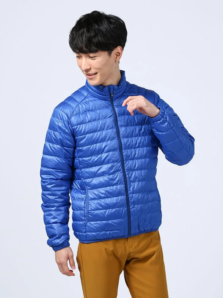 【撥水加工】軽量ダウン ブルゾン中綿 カジュアルアウター 無地 秋冬(ブルー)