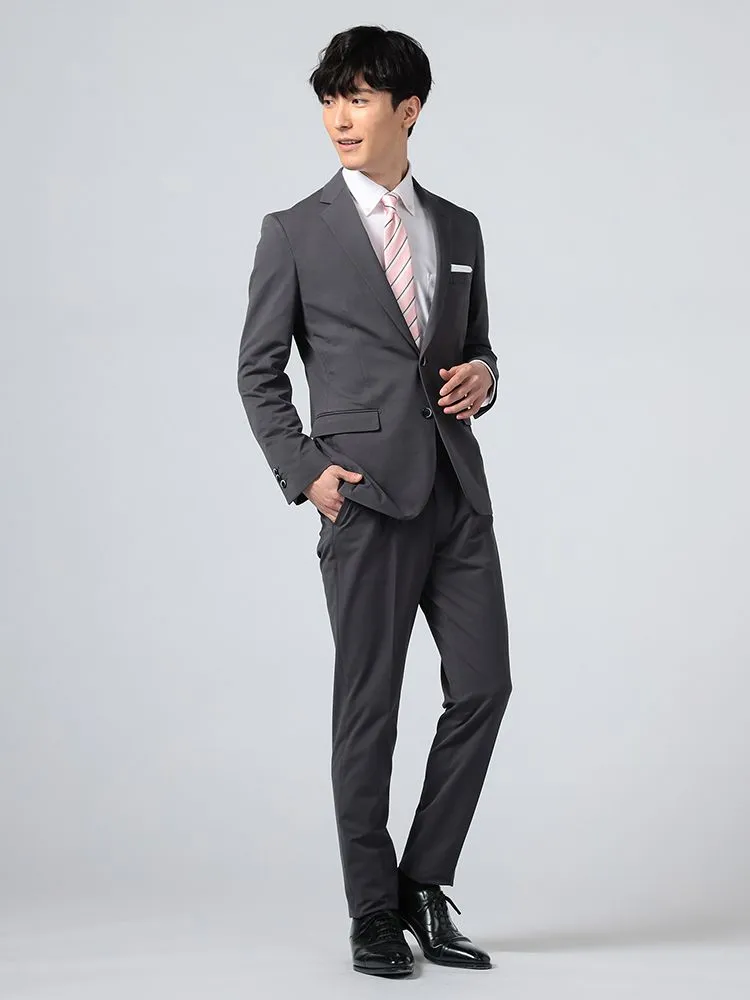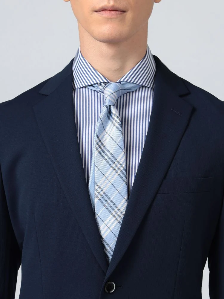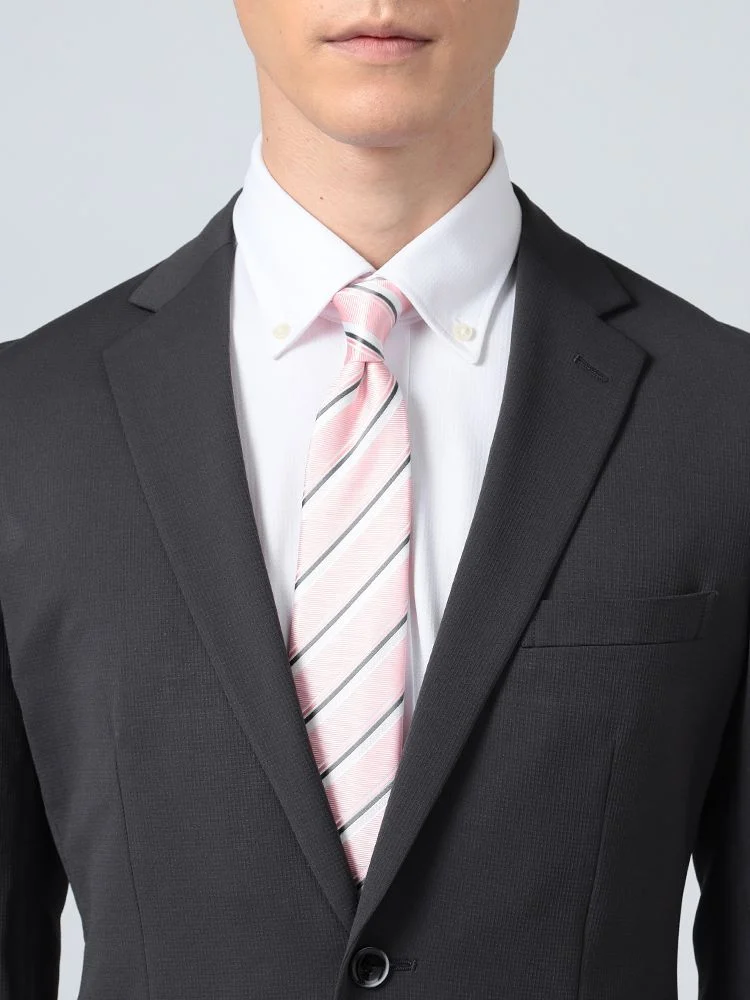柄物のネクタイやシャツともコーディネートしやすいので、合わせるアイテム次第でさまざまな表情を楽しむことができます。