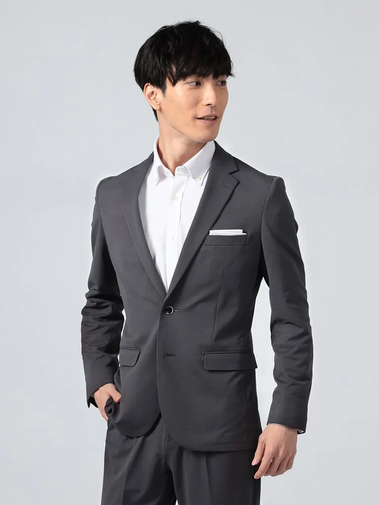 切り込みが1本のセンターベントデザインです。細身でスッキリとしたシルエットが特徴で、快適な着心地を提供します