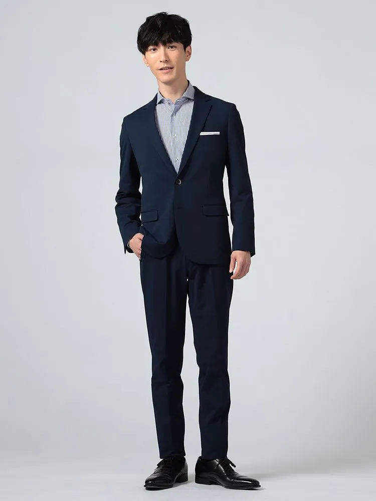 【即納】紺ブレザージャケット2つボタンネイビー無地ストレッチメタルボタン通年【WEB限定】【セットアップ対応】
