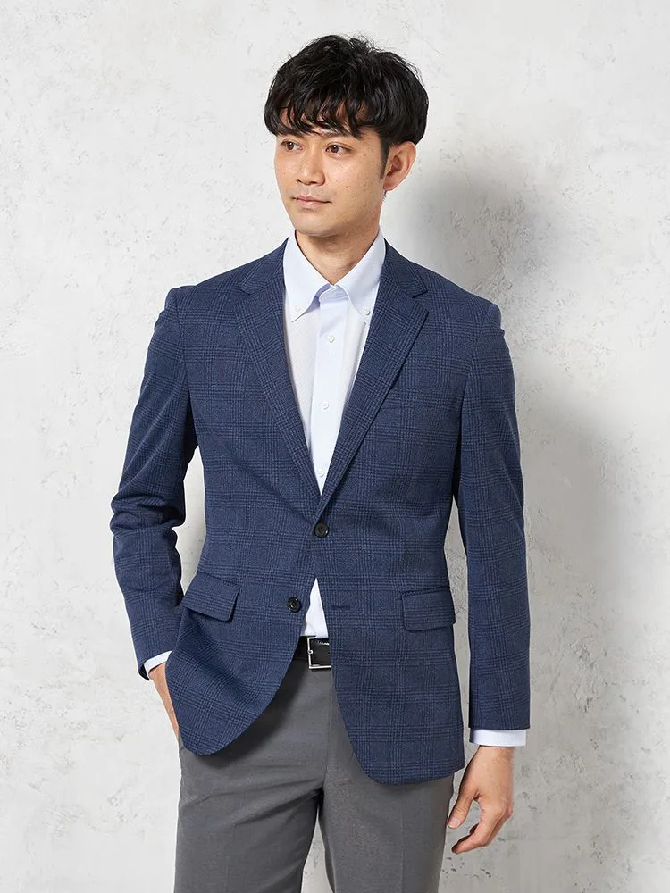 【ウォッシャブル】ジャケット2つボタン【i-Jacket-アイジャケット-】ストレッチ軽量イタリアンチェック柄春夏