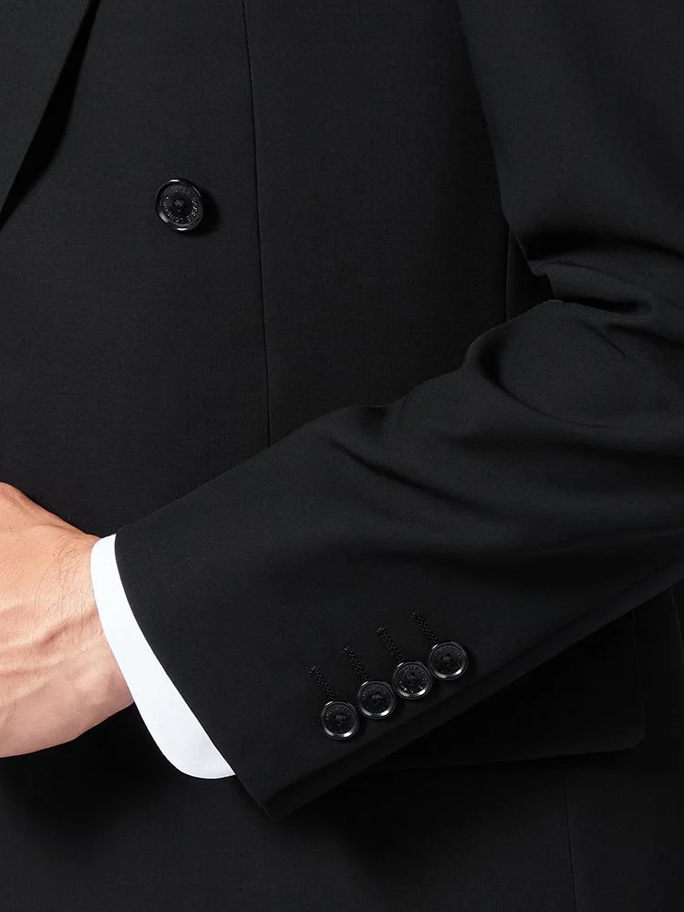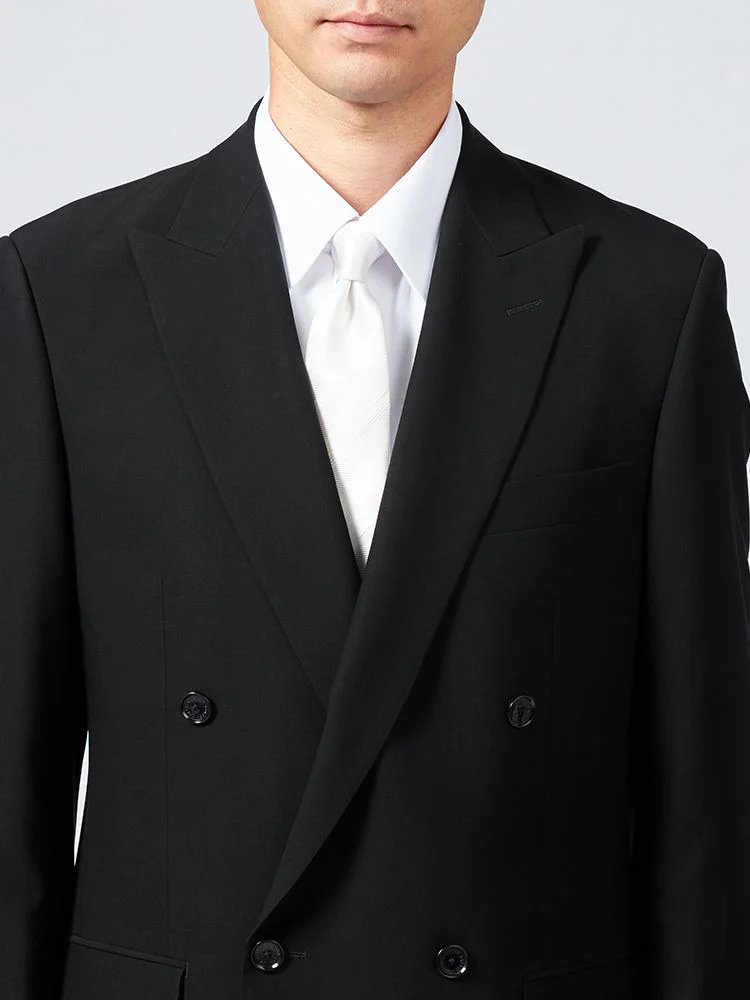 上品な雰囲気を演出するダブルブレストのブラックフォーマルです。