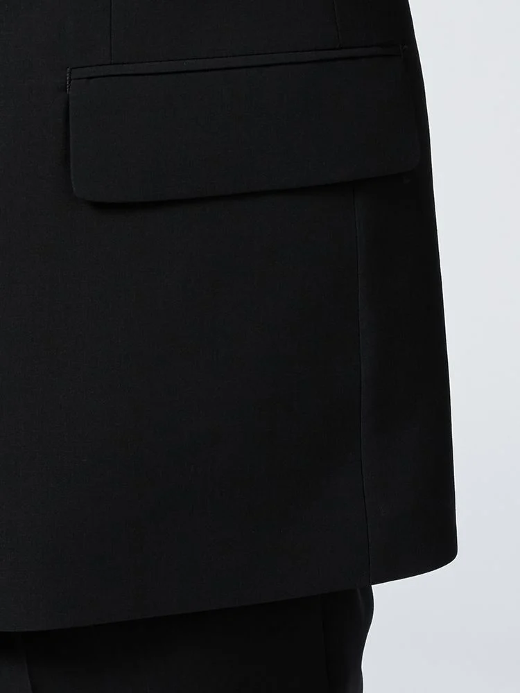 切り込みが1本のセンターベントデザインです。細身でスッキリとしたシルエットが特徴で、快適な着心地を提供します