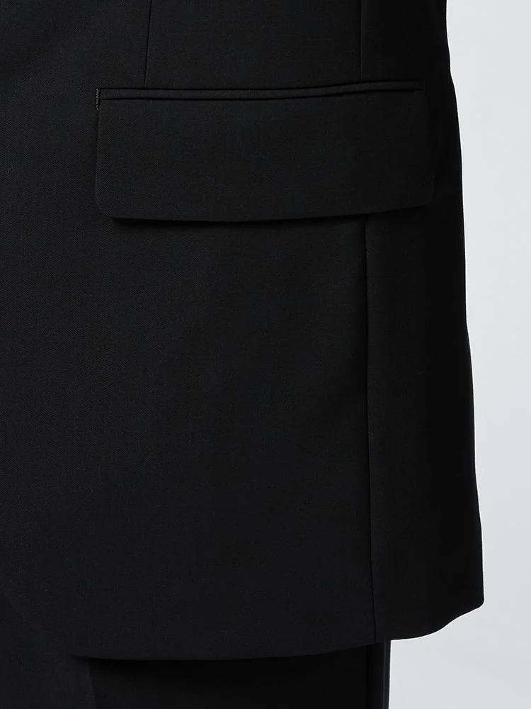 切り込みが1本のセンターベントデザインです。細身でスッキリとしたシルエットが特徴で、快適な着心地を提供します
