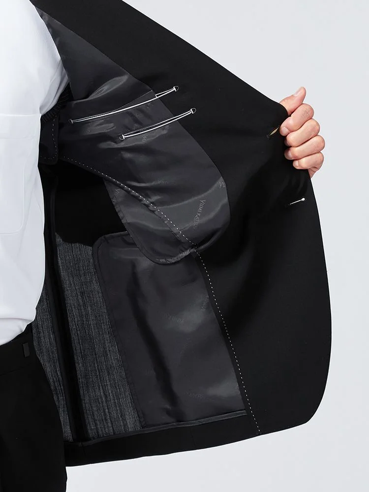 フォーマルなシーンに活躍してくれるブラックスーツです。