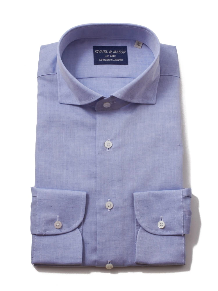 【形態安定】長袖 ワイシャツ カッタウェイ 綿麻 無地 S&M BLUE LABEL 春夏(ブルー)