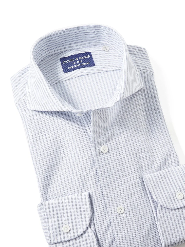 【プレミアムコットンニット】長袖 ワイシャツ カッタウェイ 綿100% ストライプ S&M BLUE LABEL 通年