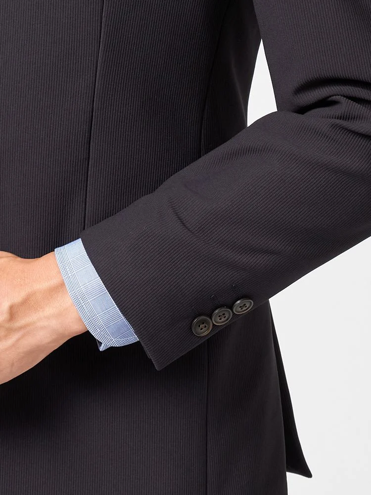 【即納】【WEB限定】スーツ2つボタンブラックシャドウストライプ上下ウォッシャブル3シーズン対応