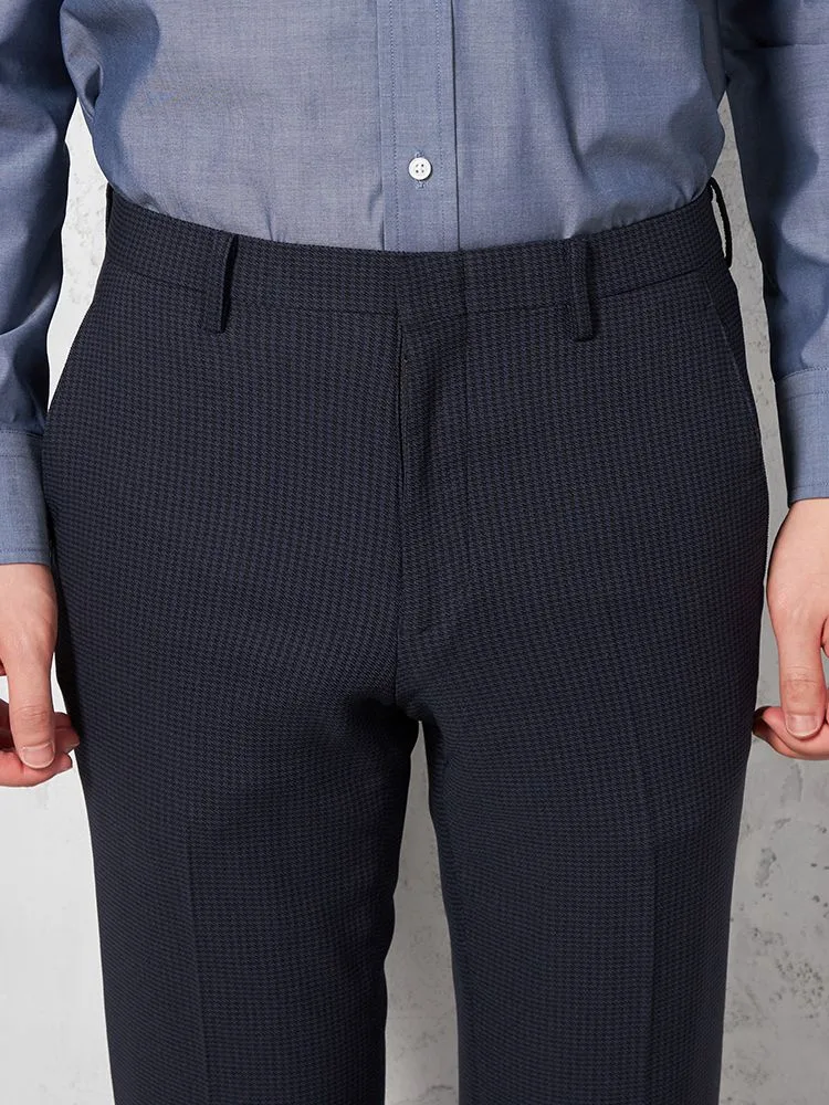 【i-Pants-アイパンツ-】バイオセンサー生地使用ウォッシャブルノータック千鳥格子スラックスnero【スリムデザイン】