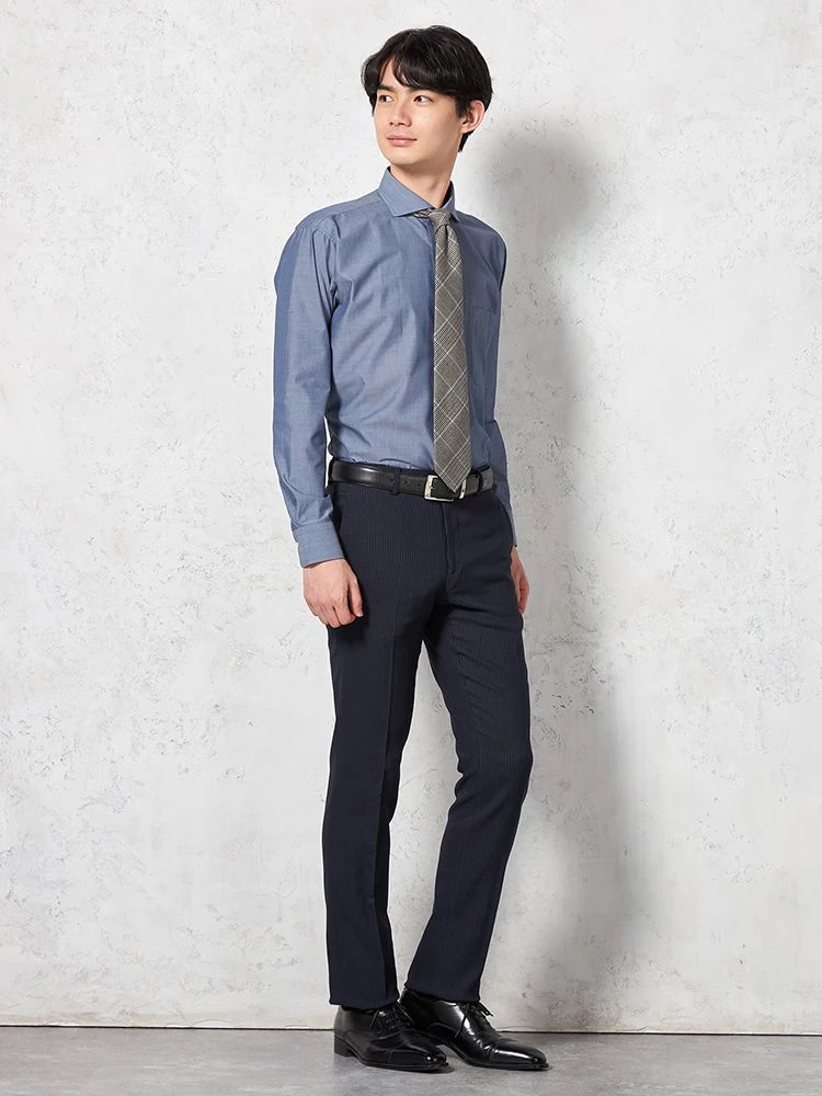 パンツの腰回りに生地の折り込みがなく、スッキリとしたシルエットを実現します。シンプルで洗練された印象を与え、すっきりとした着こなしが可能です。