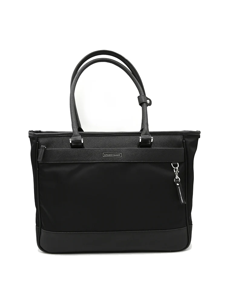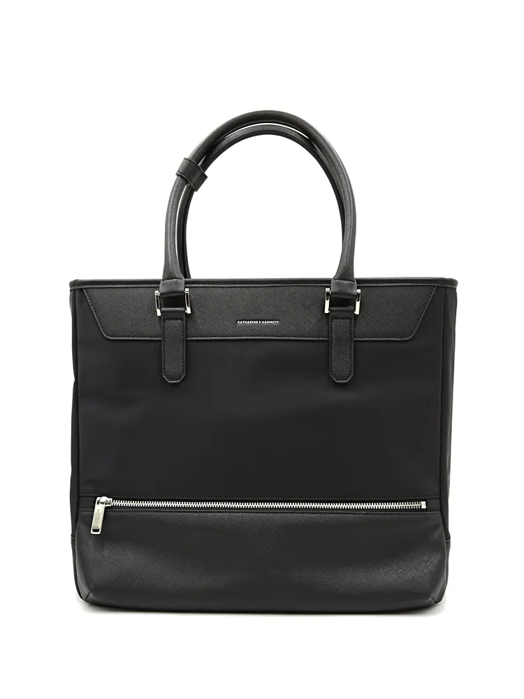 【KATHARINE E HAMNETT-キャサリン・イー・ハムネット-】トートバック ナイロン×サフィアーノ調 多収納 無地 通年