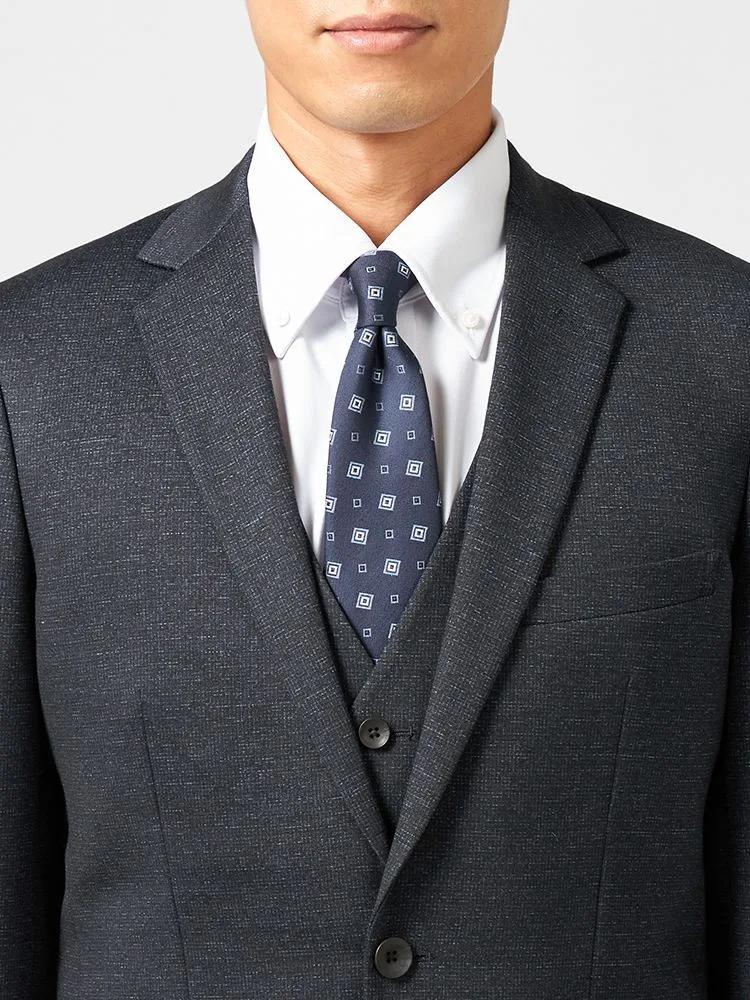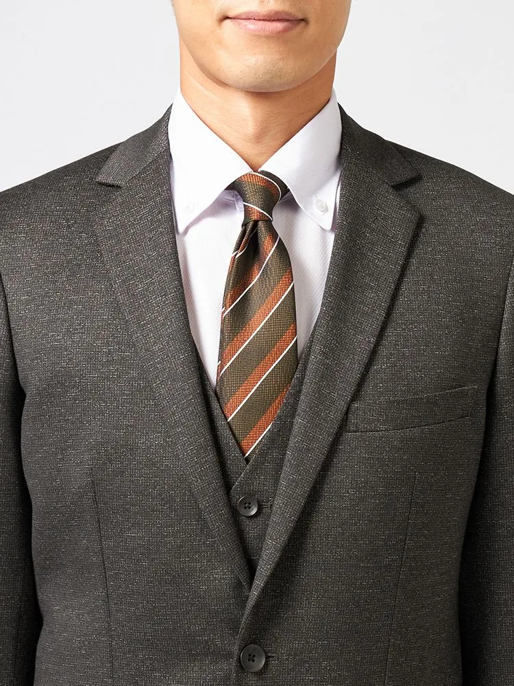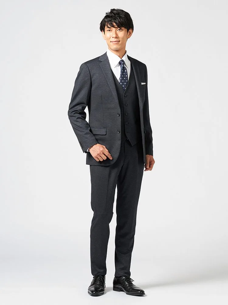ジャケット、パンツ、ベストの3点セットで、スーツ全体を簡単にコーディネートできます。ビジネスやフォーマルな場面に最適です。
