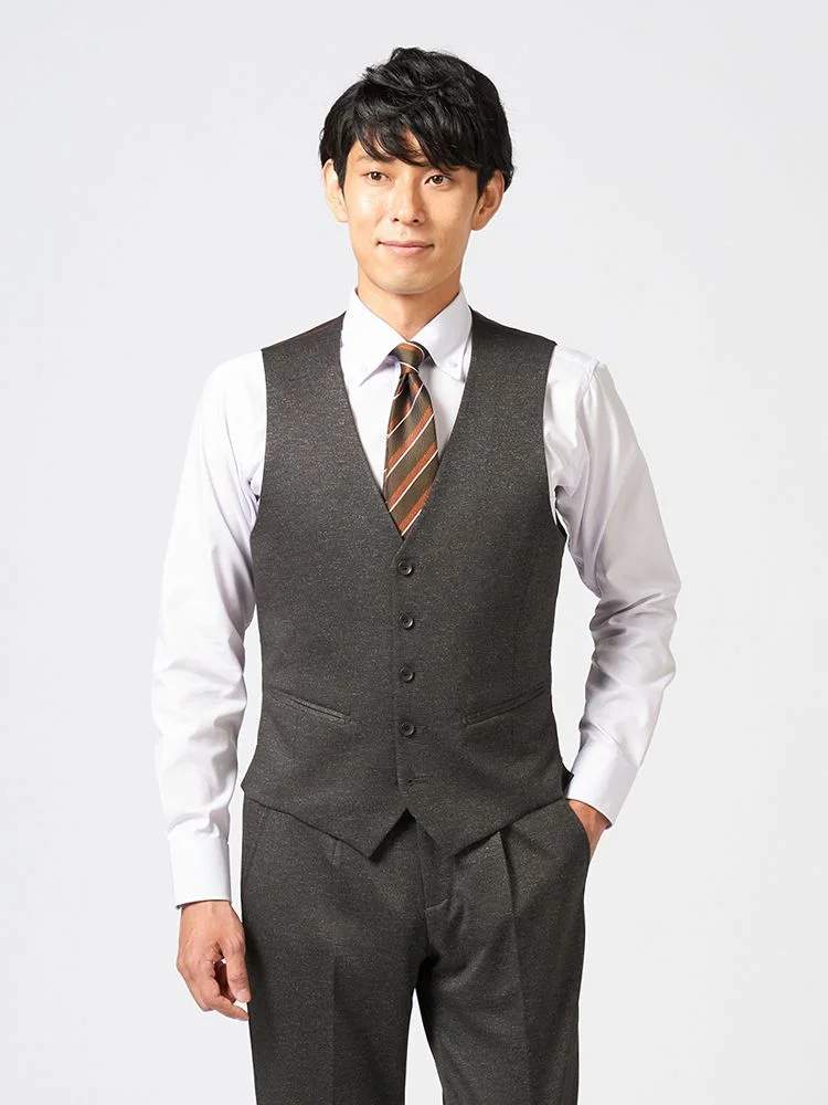【ジャケット:本商品ネイビー】×【ベスト・パンツ:本商品D.ブラウン】
