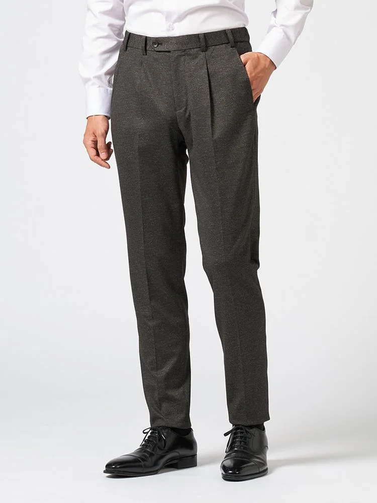 【Cassette Cross】スリーピーススーツ 2つボタン 上下ウォッシャブル ニット素材 千鳥格子 nero 秋冬【スリムデザイン】(D.ブラウン)