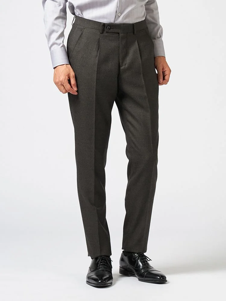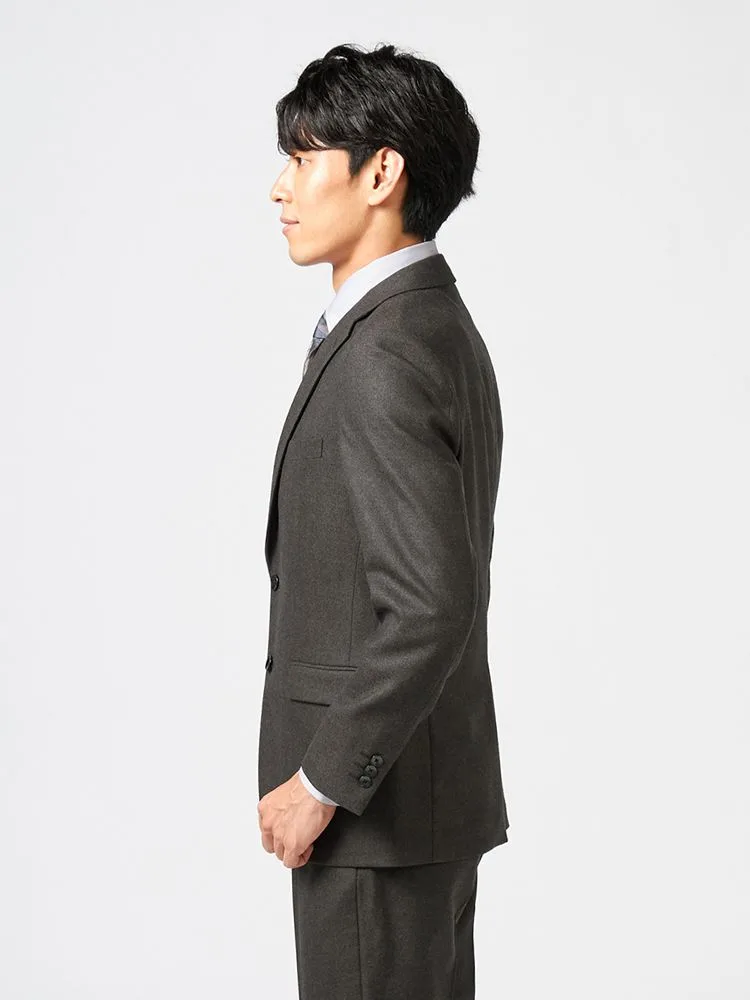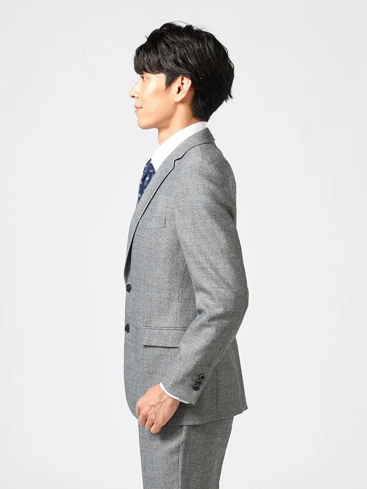 ジャケットはベーシックな通常仕立て、パンツは立体感のあるワンタック入りで、年代問わずに取り入れることができます。
