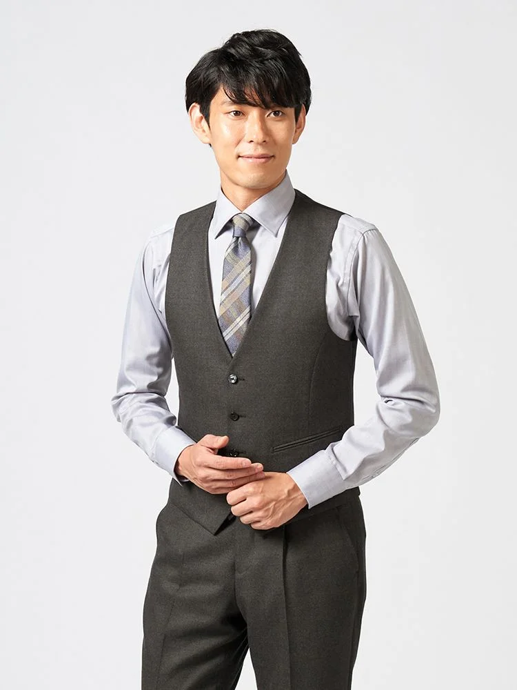ジャケット、パンツ、ベストの3点セットで、スーツ全体を簡単にコーディネートできます。ビジネスやフォーマルな場面に最適です。