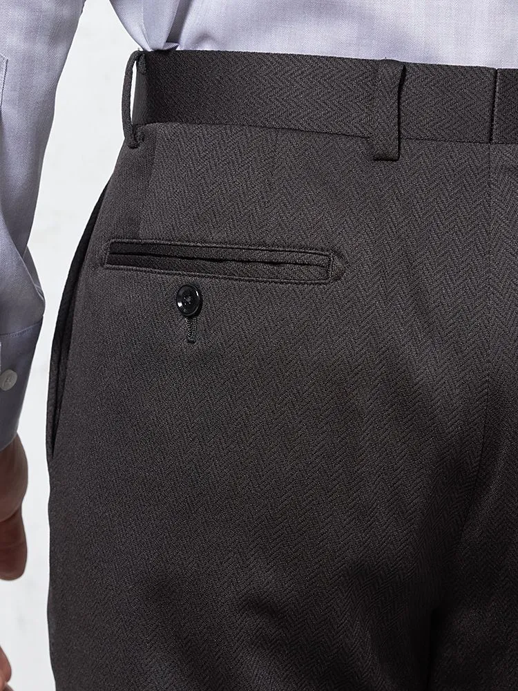 あわせるアイテムを選ばない定番のカラーに、さりげないヘリンボーン柄がおしゃれ心をくすぐるポイントです。