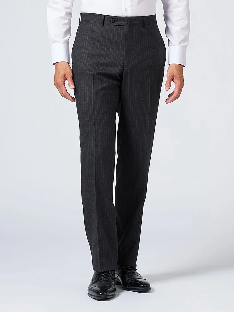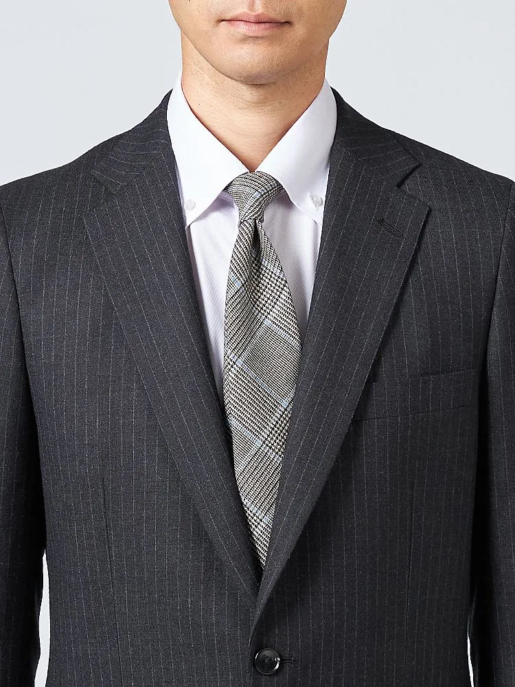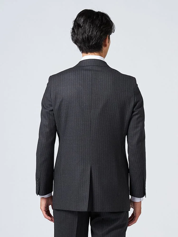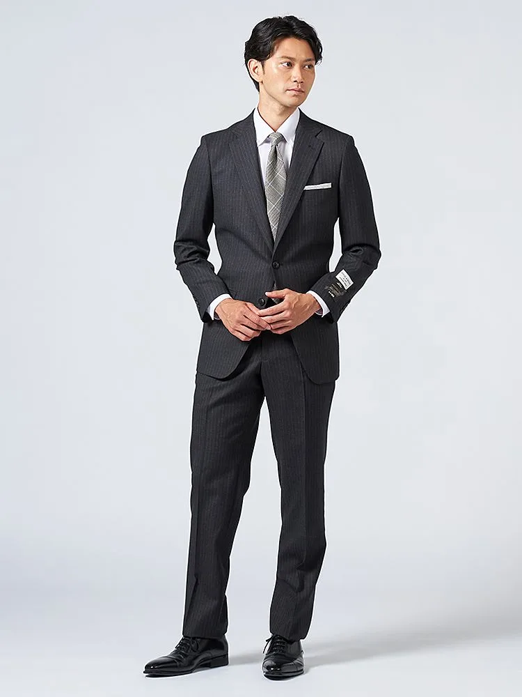【ウール100%】スーツ 2つボタン イタリア製生地 グレー ストライプ リッケンバッカーホワイト