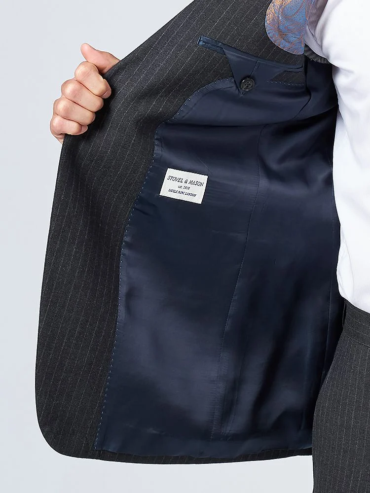 【ウール100%】スーツ 2つボタン 尾州生地 ネイビー シャドウストライプ STOVEL&MASON