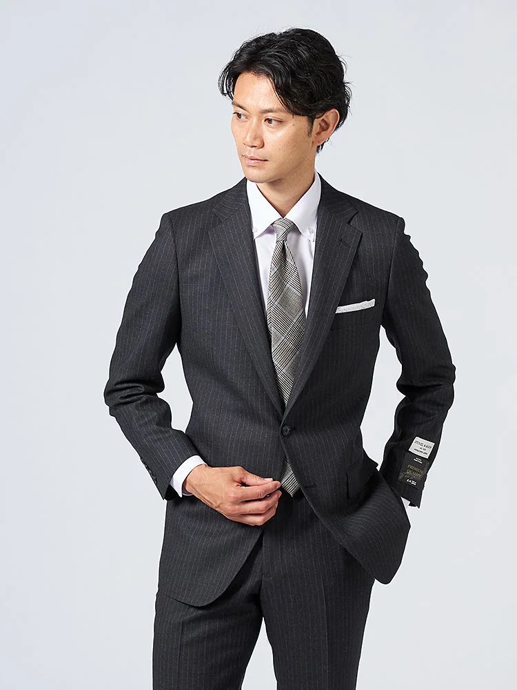 尾州産、英国羊毛&ションヘル(低速織)こだわりのプレミアム素材の高級感あふれる2つボタンスーツ。
