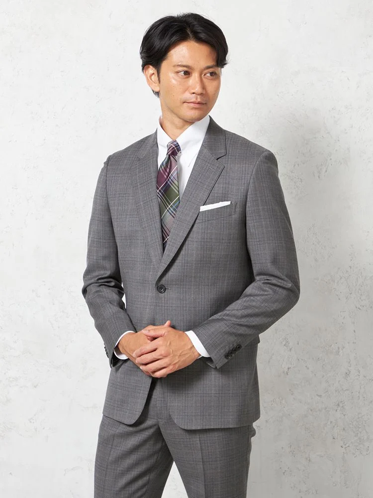 【ウール100%】スーツ 2つボタン 最高級イタリアインポート素材 チェック リッケンバッカー 秋冬