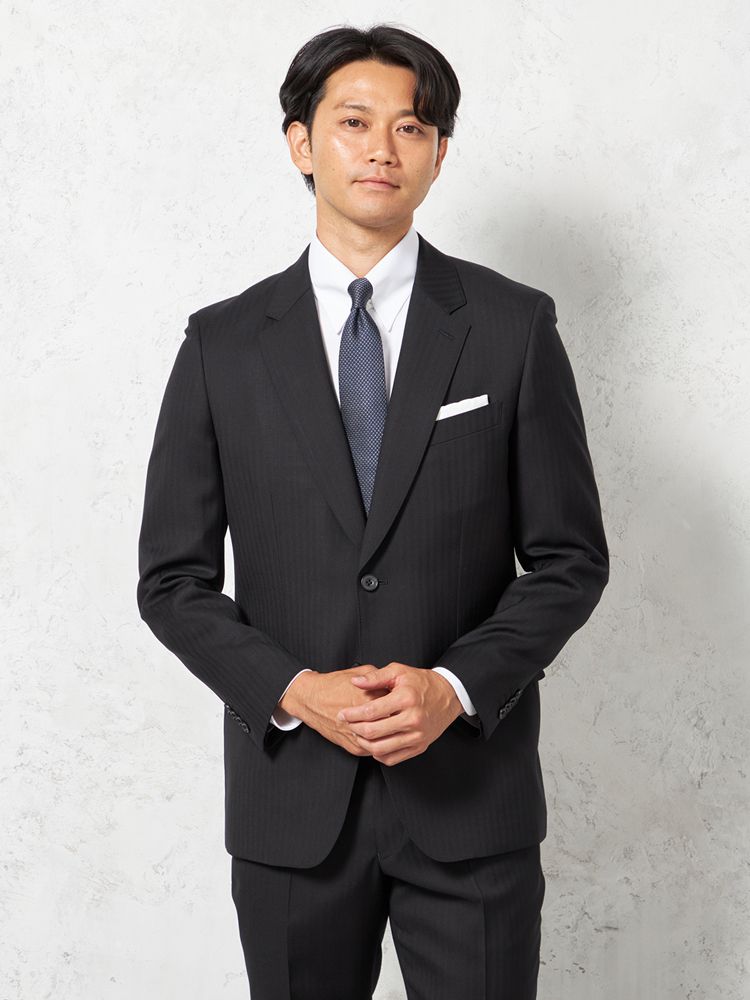 【即納】【WEB限定】スーツ2つボタンブラックシャドウストライプ上下ウォッシャブル3シーズン対応
