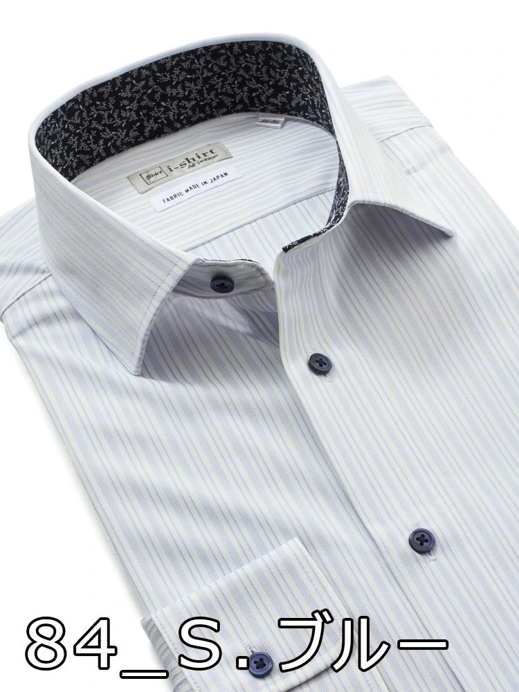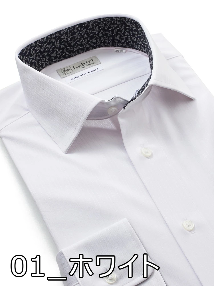 【ECOi-shirt】完全ノーアイロン長袖セミワイドエコセンサー織柄無地刺し子ワイシャツ通年