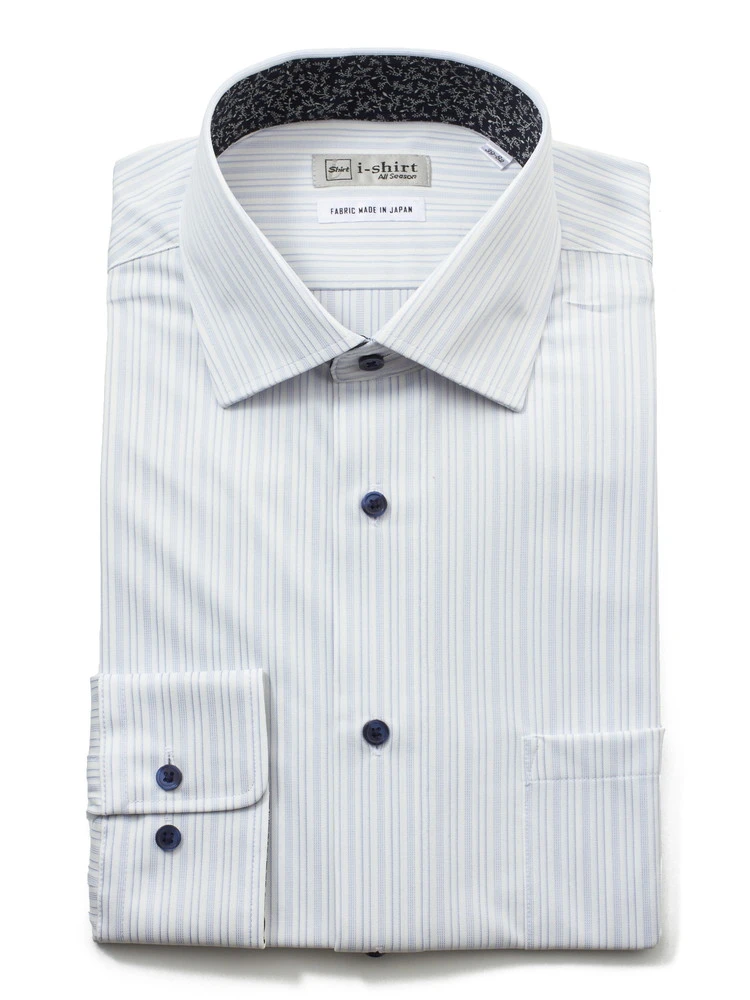 【完全ノーアイロン】長袖 アイシャツ セミワイド ストライプ ワイシャツ i-shirt 通年(ピンク系)
