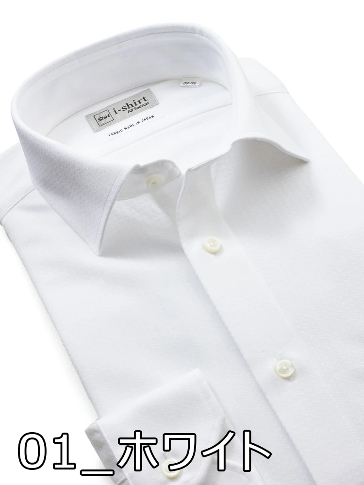 【ECOi-shirt】完全ノーアイロン長袖セミワイドエコセンサー織柄無地刺し子ワイシャツ通年