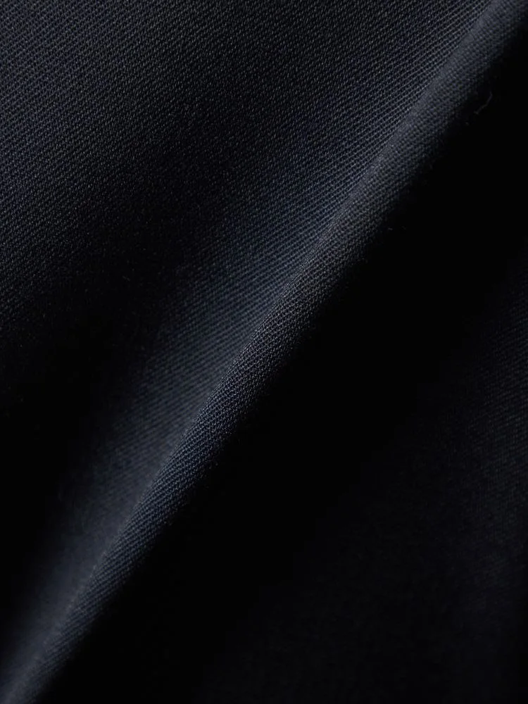 パンツの腰回りに生地の折り込みがなく、スッキリとしたシルエットを実現します。シンプルで洗練された印象を与え、すっきりとした着こなしが可能です。