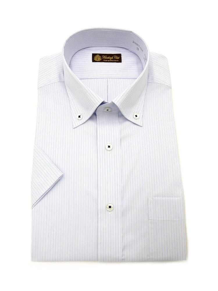 【形態安定】 半袖ワイシャツ ボタンダウン ストライプ ハントレークラブ 春夏
