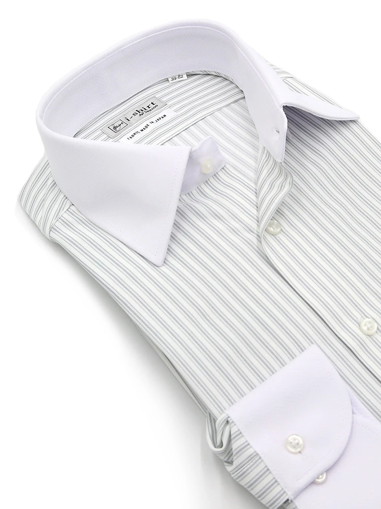 【即納】WEB限定【完全ノーアイロン】長袖アイシャツセミワイドストレッチシャドウストライプi-shirt通年