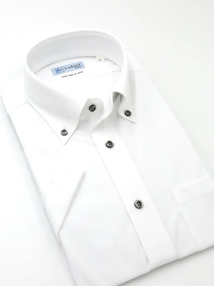 【即納】WEB限定【完全ノーアイロン】半袖 アイシャツ ボタンダウン ストレッチ 織柄無地 i-shirt 春夏(ホワイト)