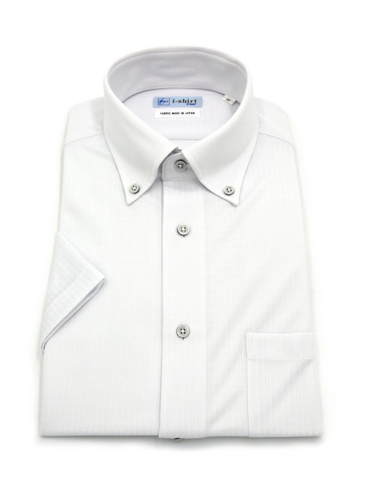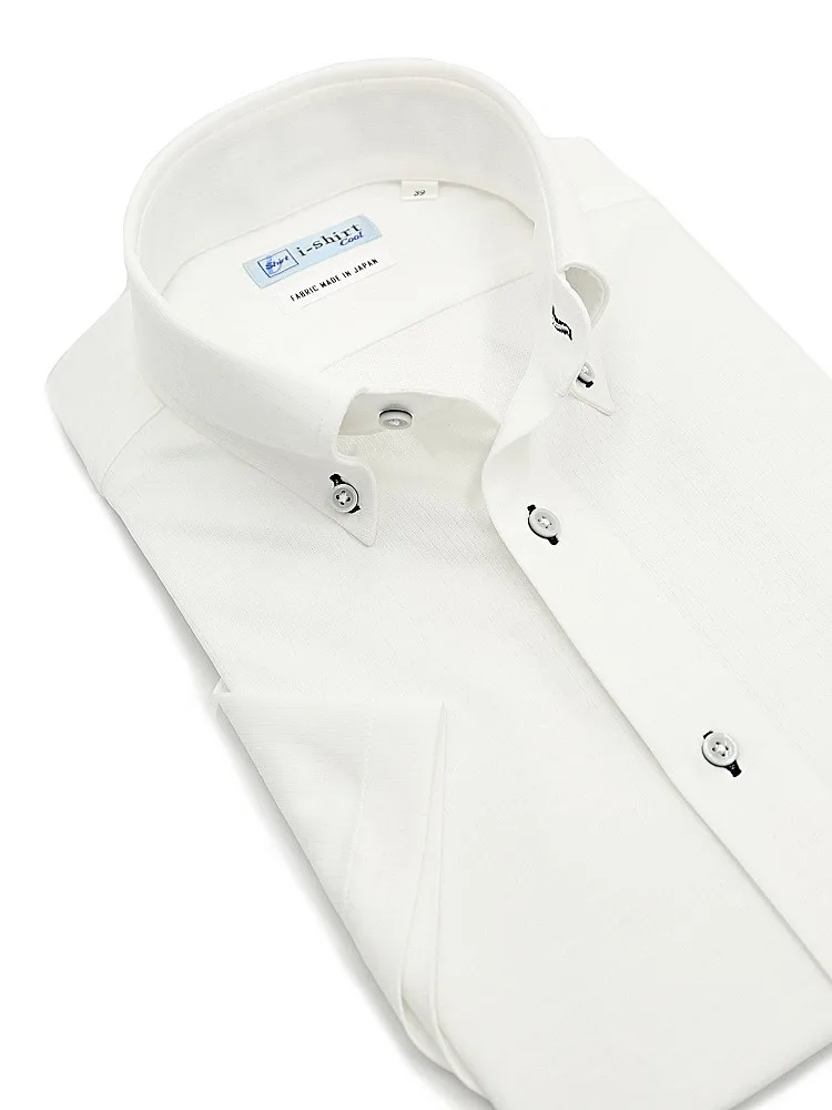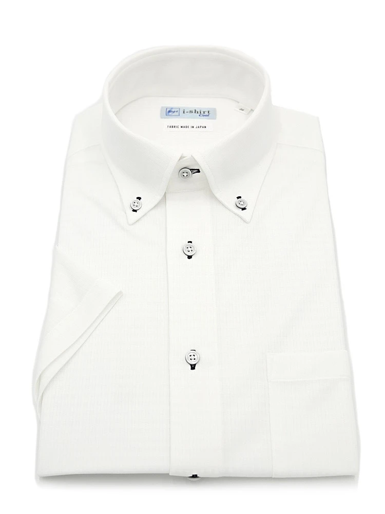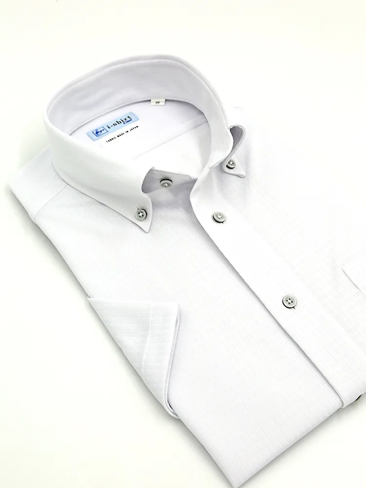【完全ノーアイロン】半袖アイシャツボタンダウン【バイオセンサークール生地使用】高通気冷感ツイル織柄無地ワイシャツi-shirt春夏
