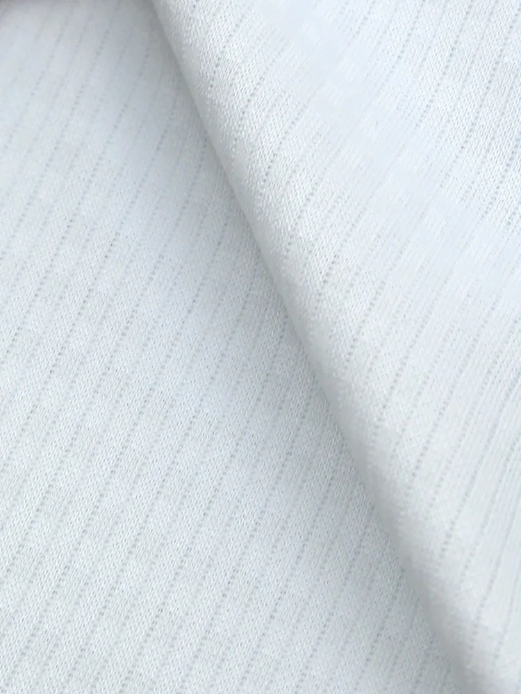こだわりの日本製生地はソフトなポリエステルニットで、スポーツウェア等にも使われる高機能素材。体の動きに合わせて生地が伸び縮みする高いストレッチ性が特徴で、動作時の負荷が少なく着用ストレスも軽減します。