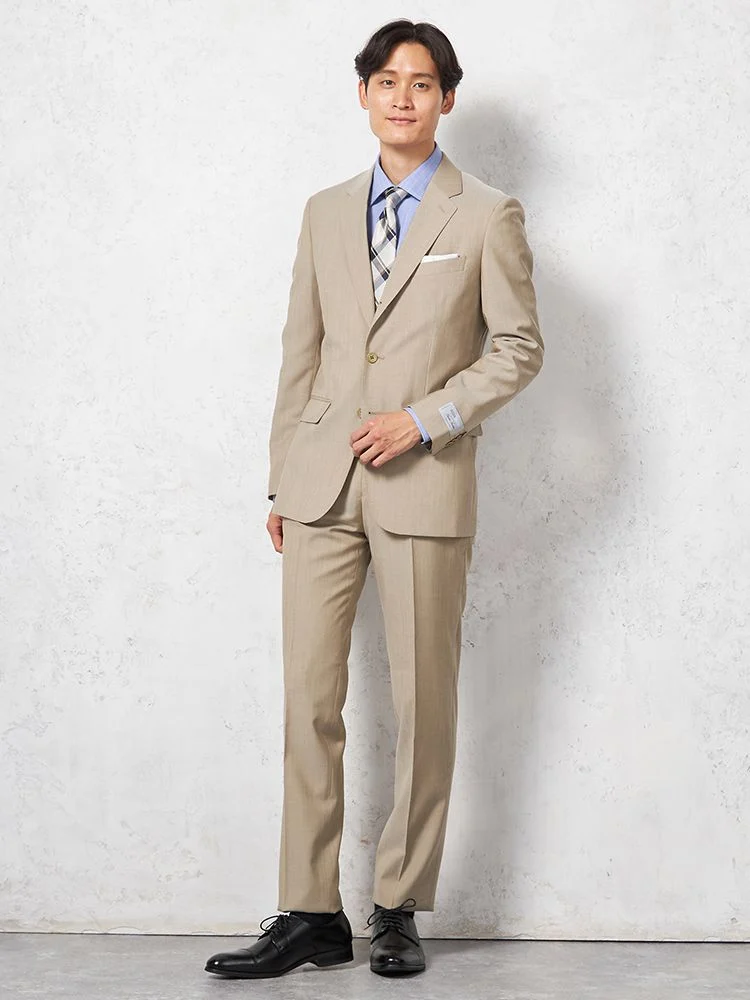 サスティナブルなイタリア製生地を使用したスーツです。