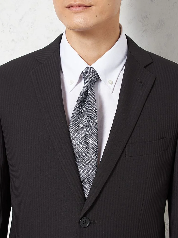 【即納】スーツ 2つボタン【WEB限定】4WAYストレッチ 織柄 チャコールグレー 通年