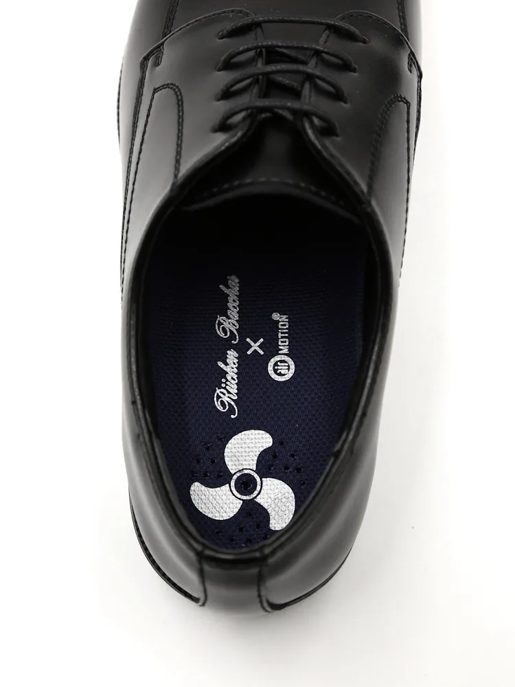 【消臭加工】シューズラウンドトゥ外羽根ヒモスワールnero