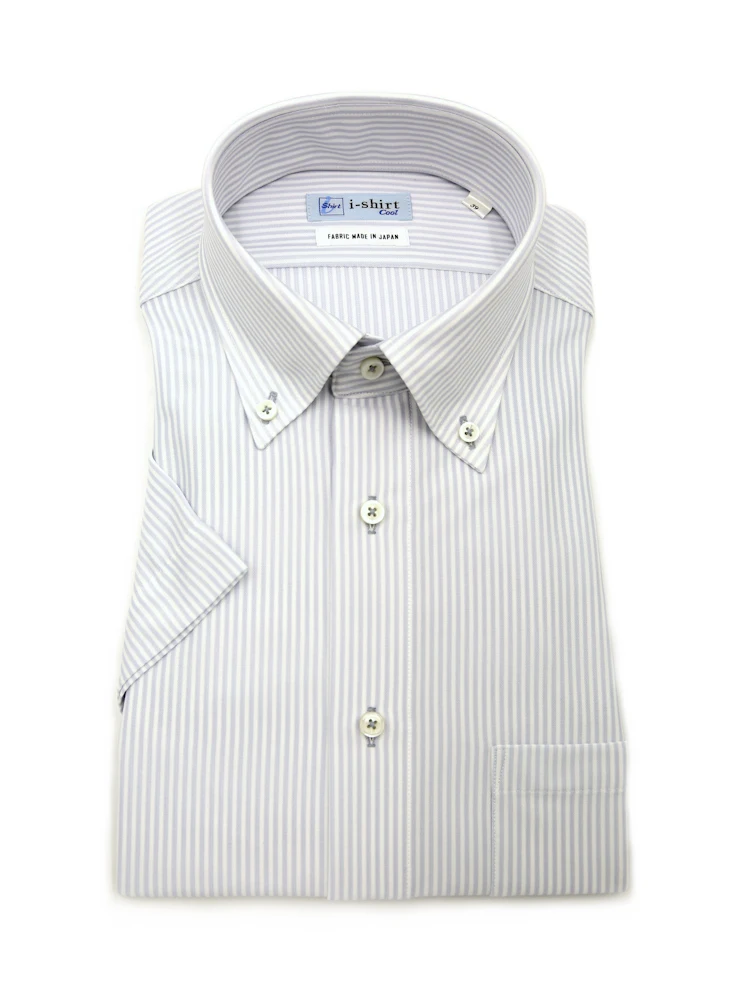 【完全ノーアイロン】半袖 アイシャツ ボタンダウン【バイオセンサークール生地使用】高通気 冷感 ストライプ ワイシャツ i-shirt 春夏(L.グレー)