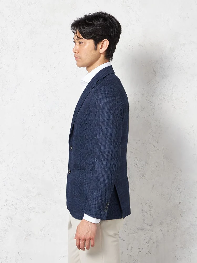 【ウォッシャブル】ジャケット 2つボタン【i-Jacket-アイジャケット-】ストレッチ 軽量 イタリアンチェック柄 ネイビー 春夏