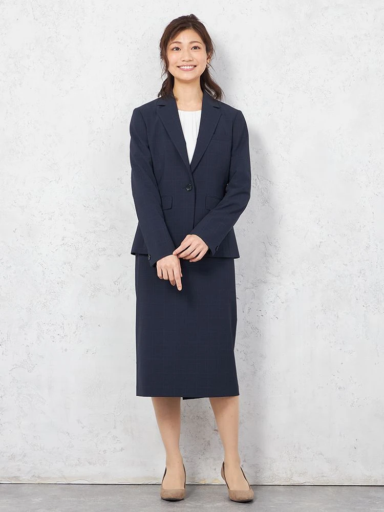 同素材のボトムスを合わせ、シックなビジネススタイルをぜひお楽しみください。