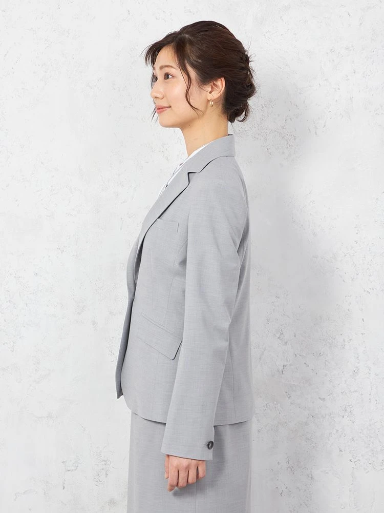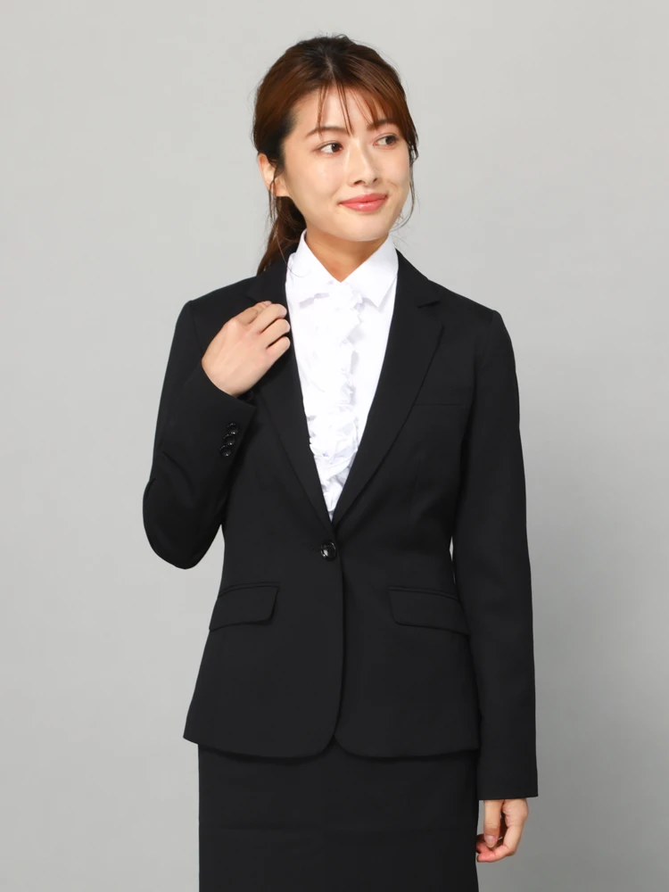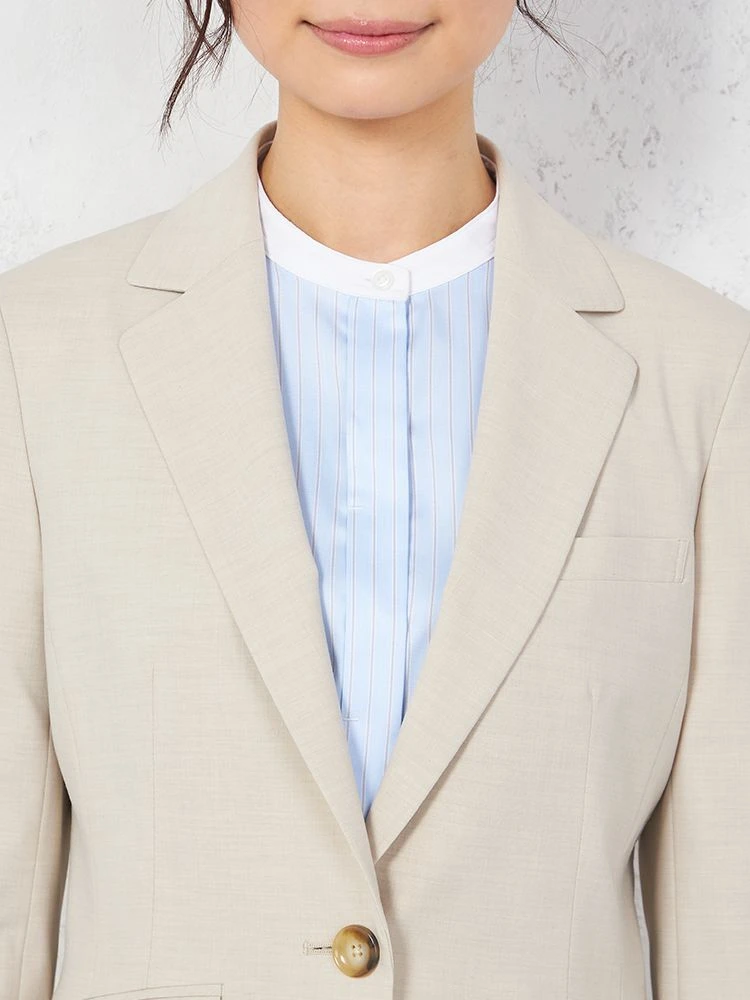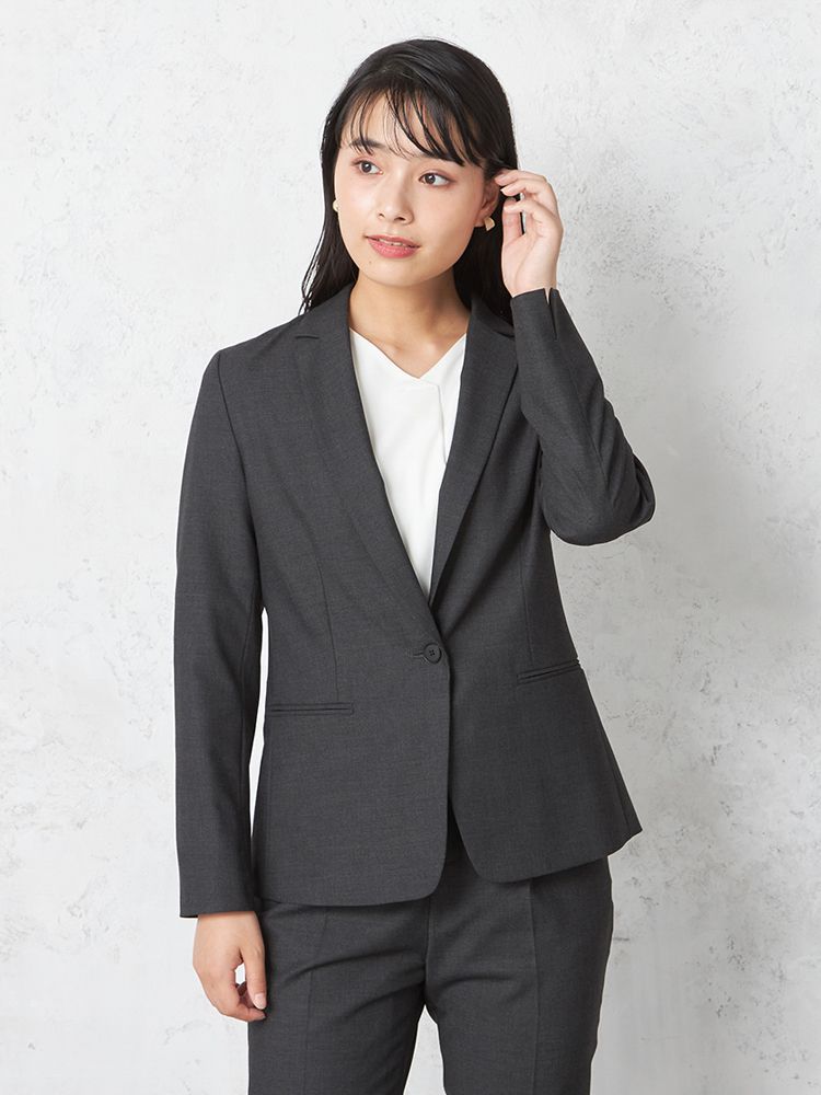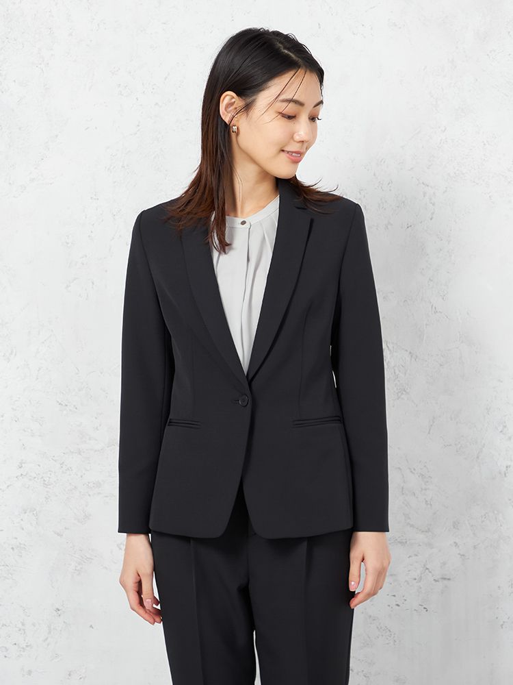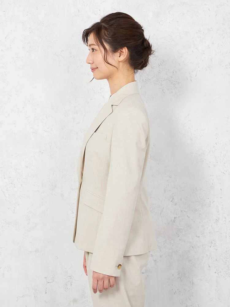 1つボタンのデザインで、シンプルかつスタイリッシュな印象を与えます。洗練されたシルエットが特徴です。