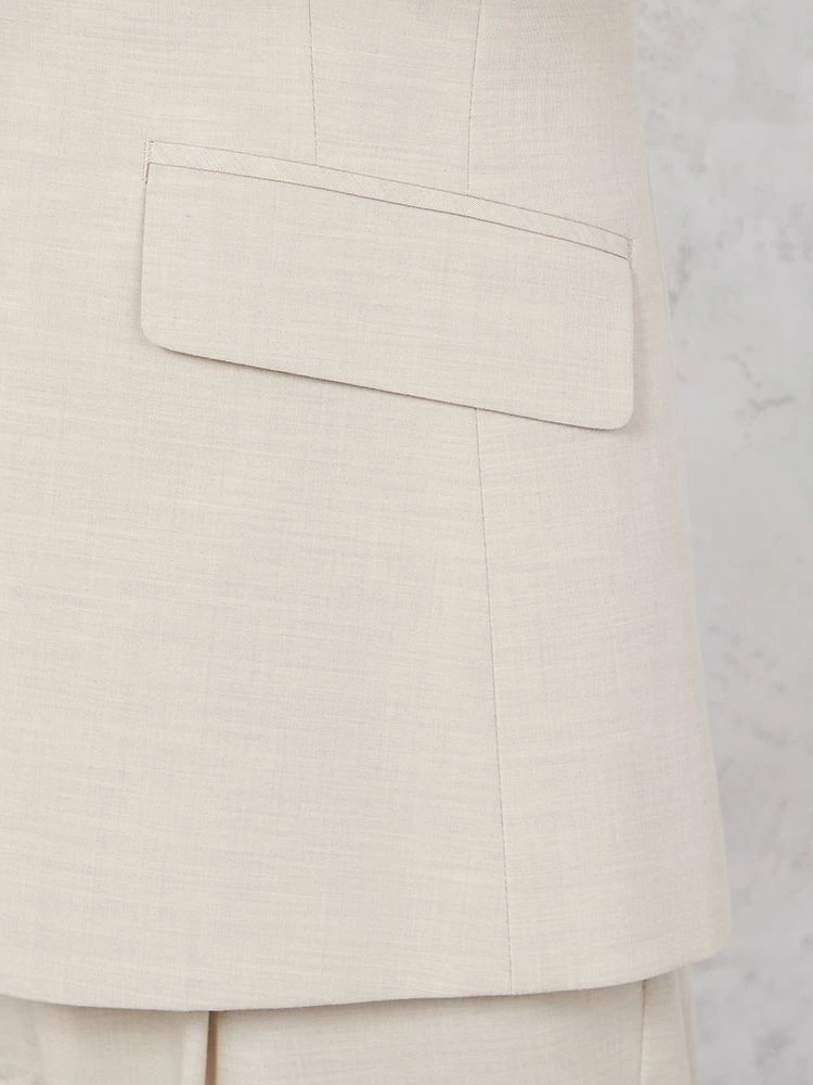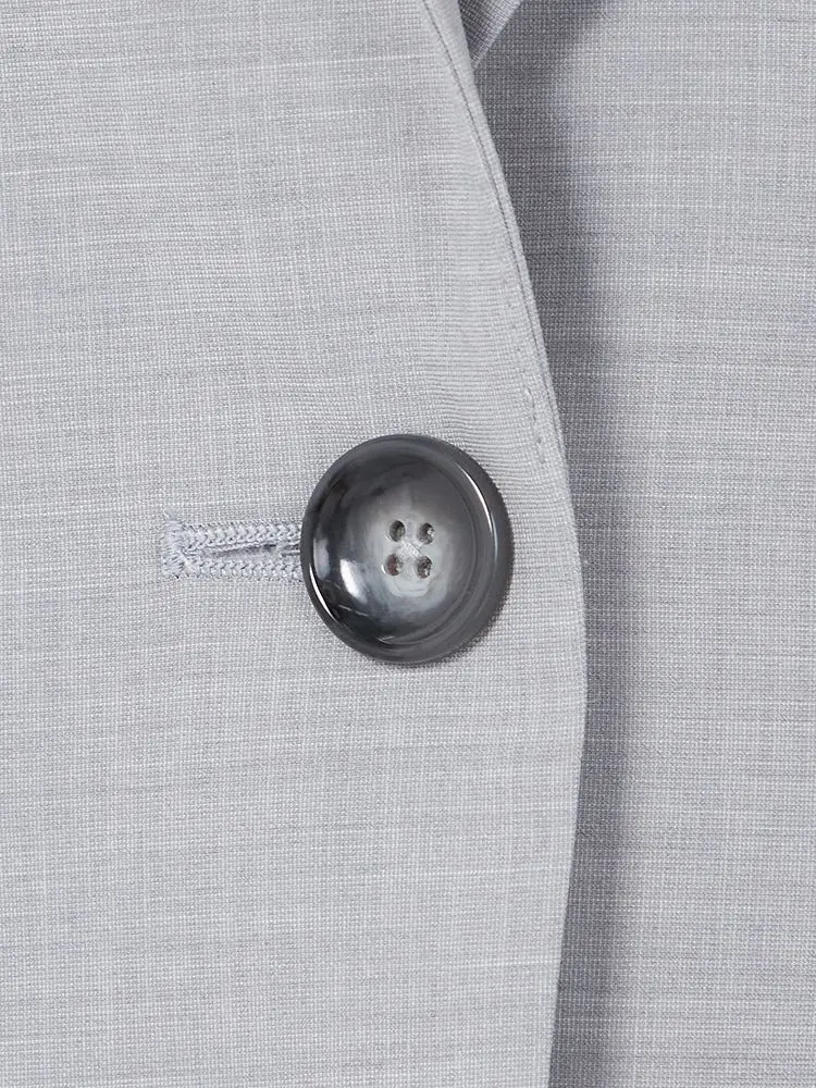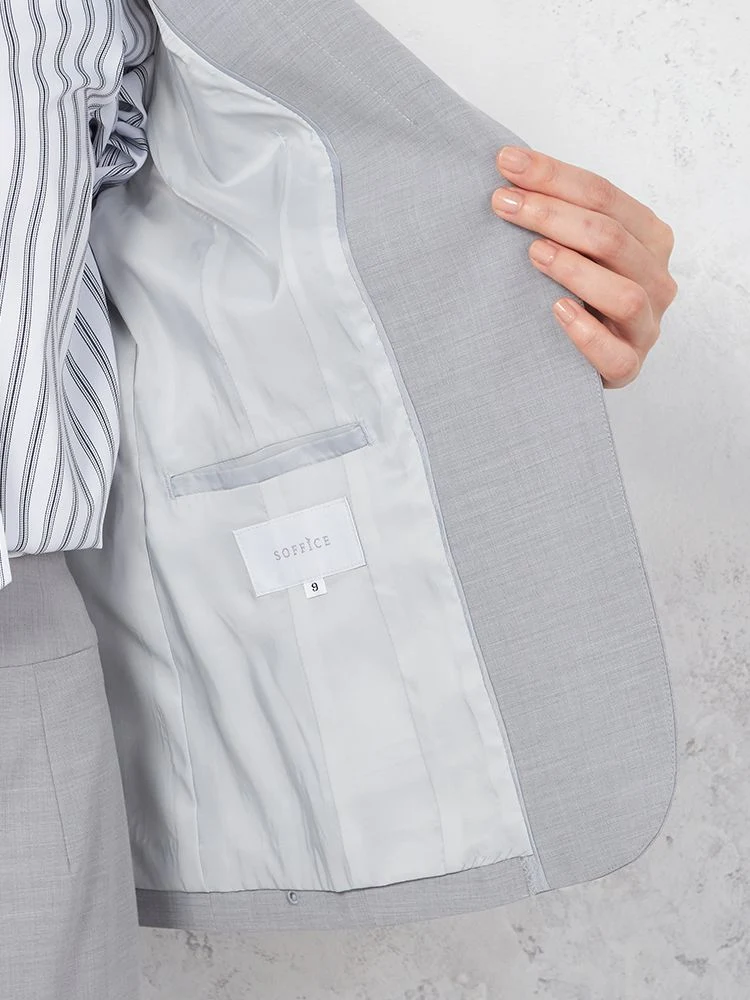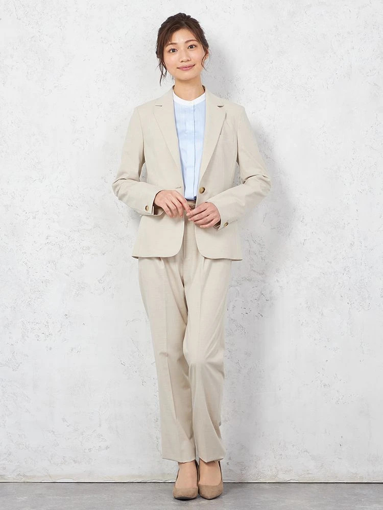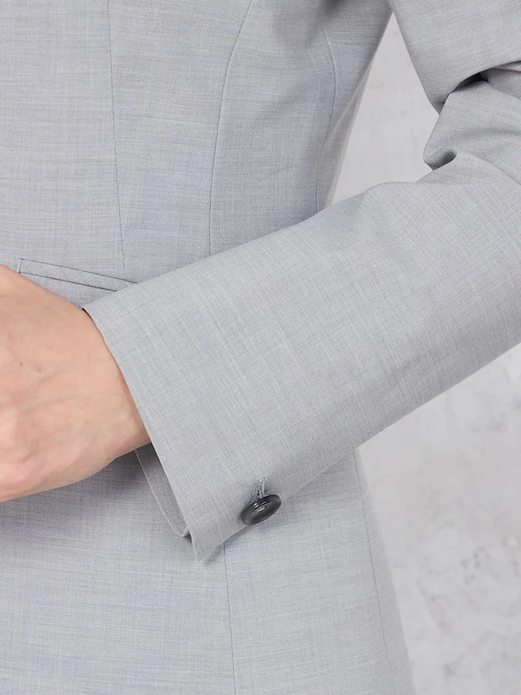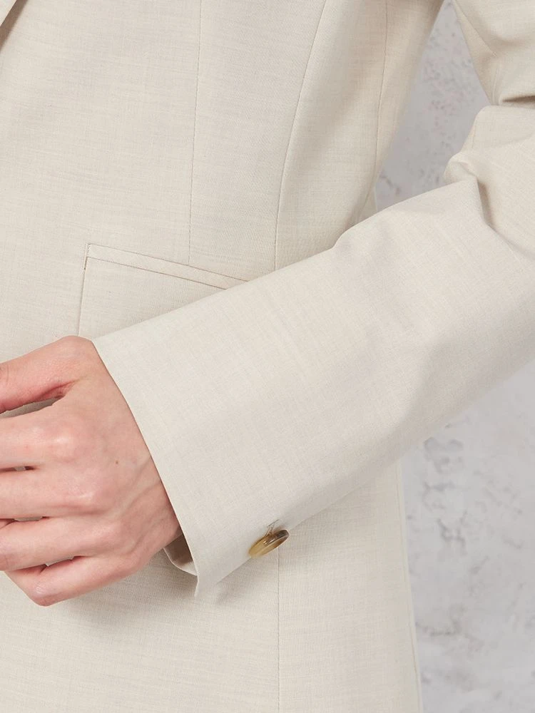 1つボタンのデザインで、シンプルかつスタイリッシュな印象を与えます。洗練されたシルエットが特徴です。