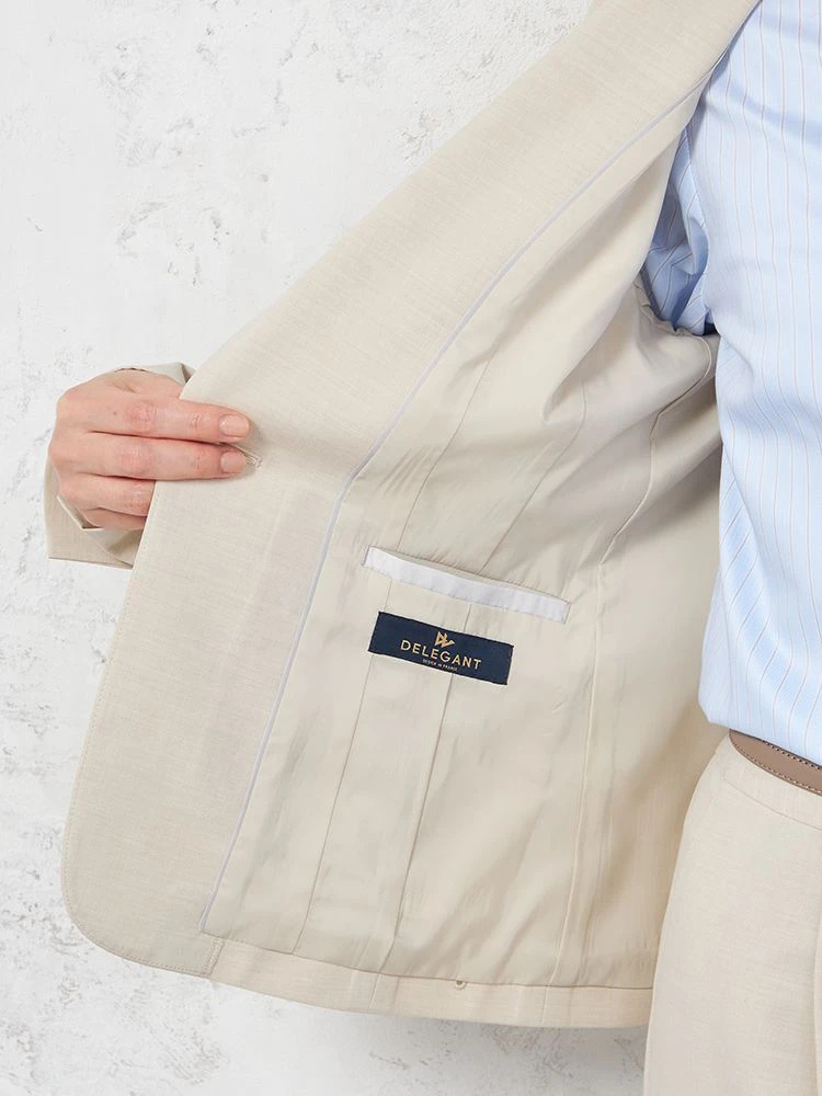 背中の裏地が省かれている背抜き仕様で、軽やかな着心地を実現。通気性があり、快適に着用できます。