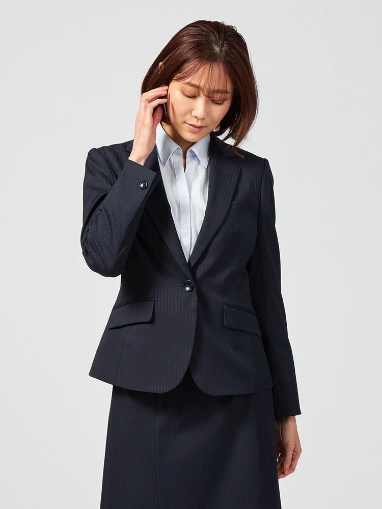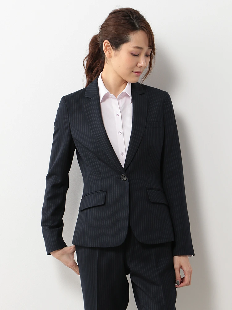 【ウォッシャブル】レディスジャケットストレッチネイビーストライプ通年【レディース】