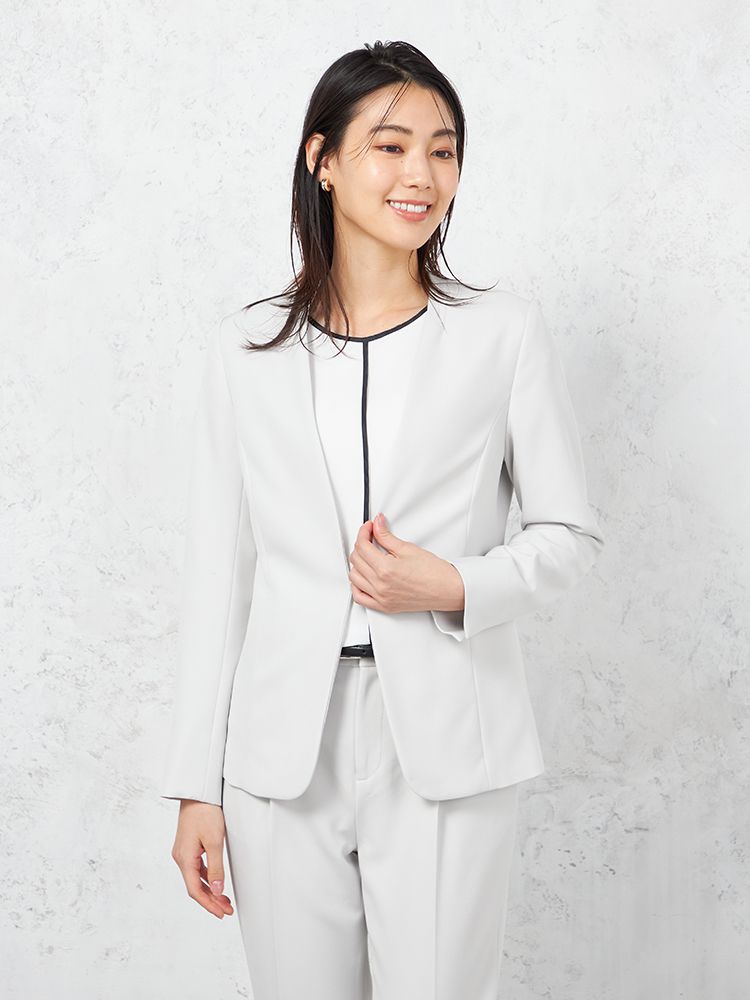 【ウォッシャブル】ノーカラージャケットリネンライクストレッチUVカットSOFFICE春夏【レディース】